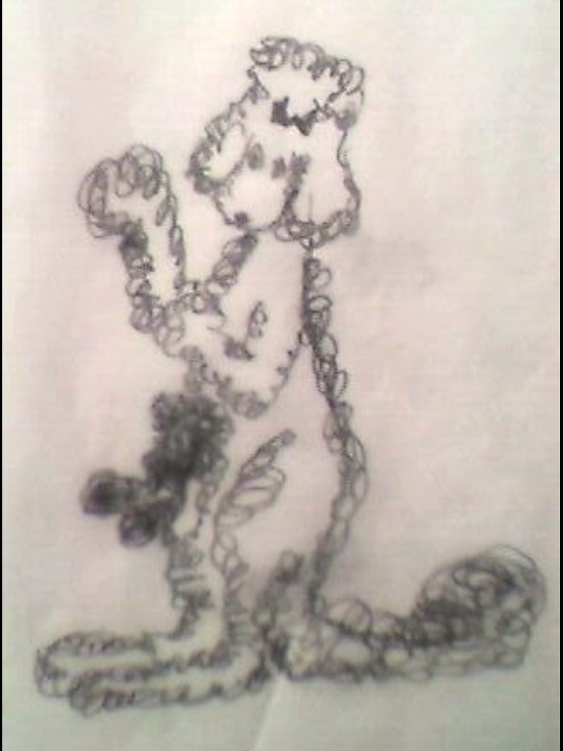 It can only use a computer keyboard with its left front paw as the nails on its right paw are too long and obviously need to be kept in this condition to enable it to scratch inside its long, fluffy ears when they get itchy. When content, it wags its tail with great enthusiasm.